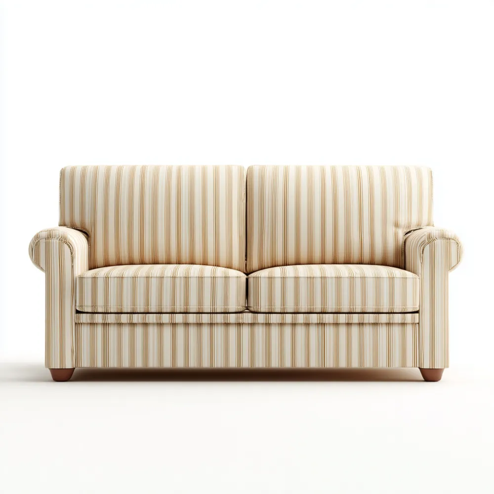Ce canapé est fabriqué en tissu doux et durable avec un motif rayé Beige. Le cadre est en bois massif pour assurer stabilité et longévité.